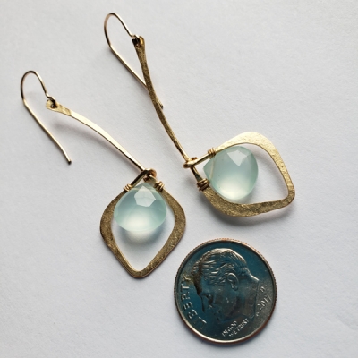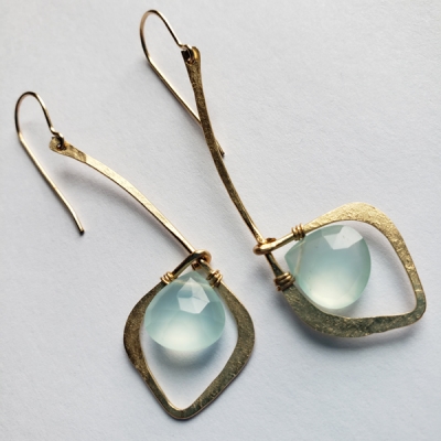 Blue chalcedony earrings, 14k gold filled. E102