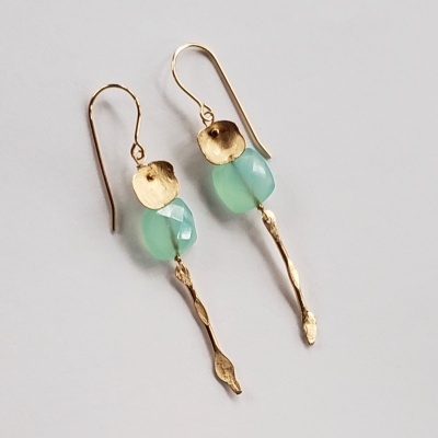 Square shaped blue chalcedony earrings, hand forged gold accents.