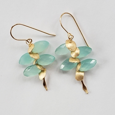 Smashing seafoam blue chalcedony earrings with golden petals.