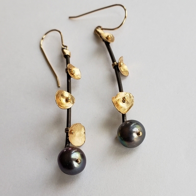 Freshwater brown pearl earrings, 14k gold filled. Hand made. E254