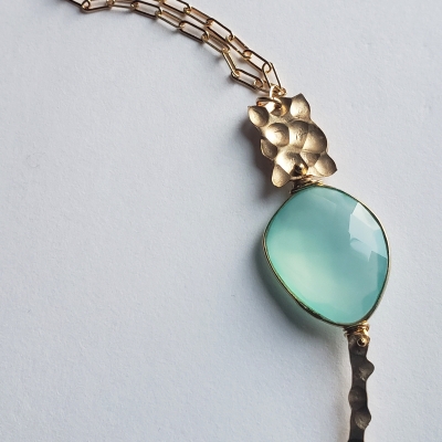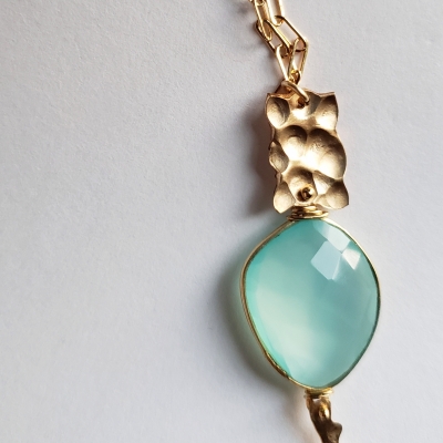 Smashing blue chalcedony bezel, 14k gold filled. Hand made.