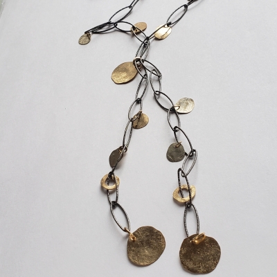 Gold and sterling silver, necklace, lariat, hand made. N259